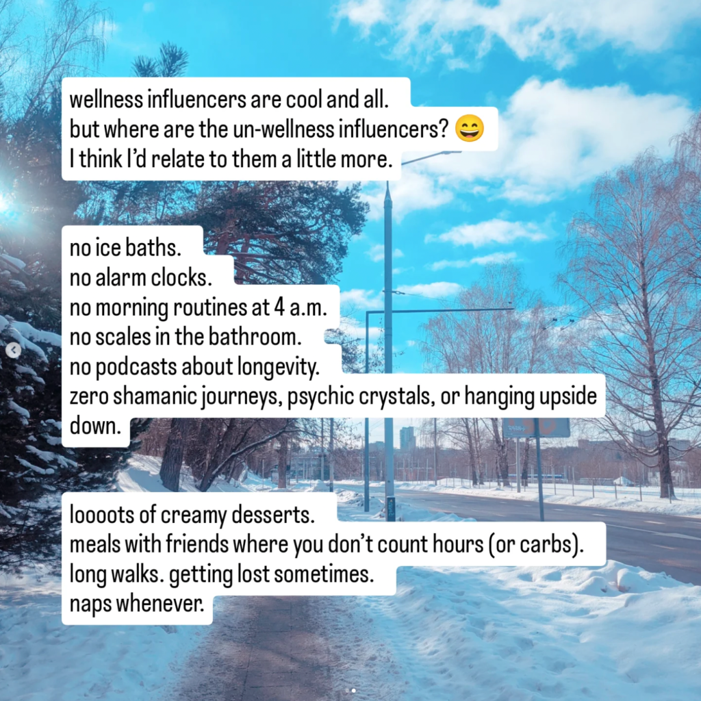 ‘Kur yra visi un-wellness influenceriai?’ Vasario pradžioj taip rašiau Instagram’e. Man atrodo, kad mes rastume visai nemažai sąlyčio taškų.